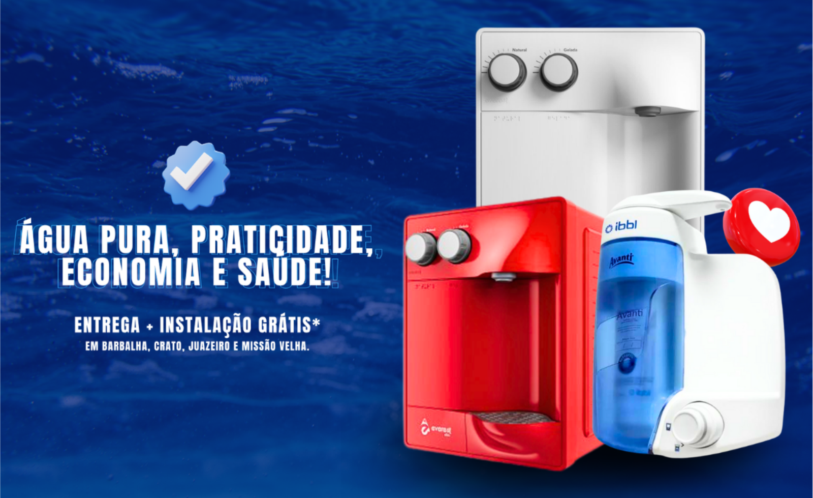 Somos uma empresa com propósito e valores, construídos com o trabalho de Antônio Carlos, que começou com o objetivo de proporcionar água da melhor qualidade para o Cariri e outras cidades do interior do Ceará e hoje além disso, também proporcionamos para os empreendedores, bebedouros de fabricação própria e equipamentos em aço inox, também de fabricação própria. Hoje contamos com loja física para recebê-los e equipe técnica local, para que você tenha os melhores produtos, com o melhor custo-benefício e agilidade no atendimento. Hoje nós atendemos todo o Ceará e cidades dos estados vizinhos, como Pernambuco, Paraíba e Rio Grande do Norte.